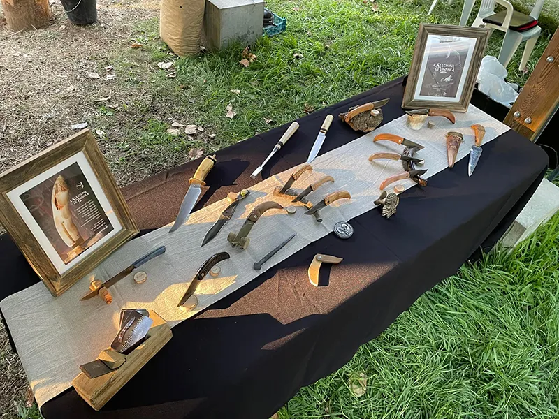 Toutes les étapes de fabrication sont réalisées à l’atelier, de la forge de la lame à l’assemblage final. Les manches sont confectionnés à partir de bois préparés par ses soins ou de cornes corses, travaillées et séchées selon des méthodes anciennes.